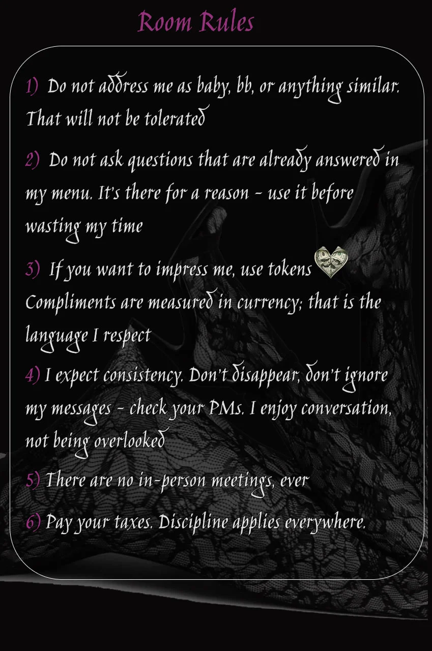 ✍️important information! if you are uncomfortable or offended by looking at female domination, it does not excite you, I ask you to leave the page.If you are also deep into the topic of studying fetishes and sexuality, then this page is for you. here we find pleasure in accepting and satisfying each other's sexual needs. Share your innermost fetishes and kinks with me!We are here to have fun and pleasure and satisfy our sexual needs in an ecological way. also, if you want to get to know me better as a person and not as a dominant mistress, you can write about it, but keep in mind that I do not meet in person. Don't confuse my online image with a real person. I'm working towards dominance because it's close and interesting to me. but you can discuss all your preferences with me. But remember, I'm not a nude model.