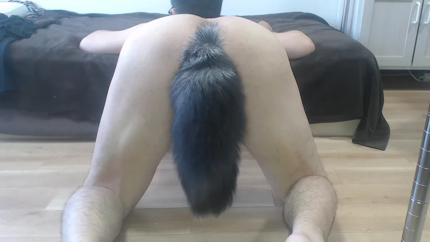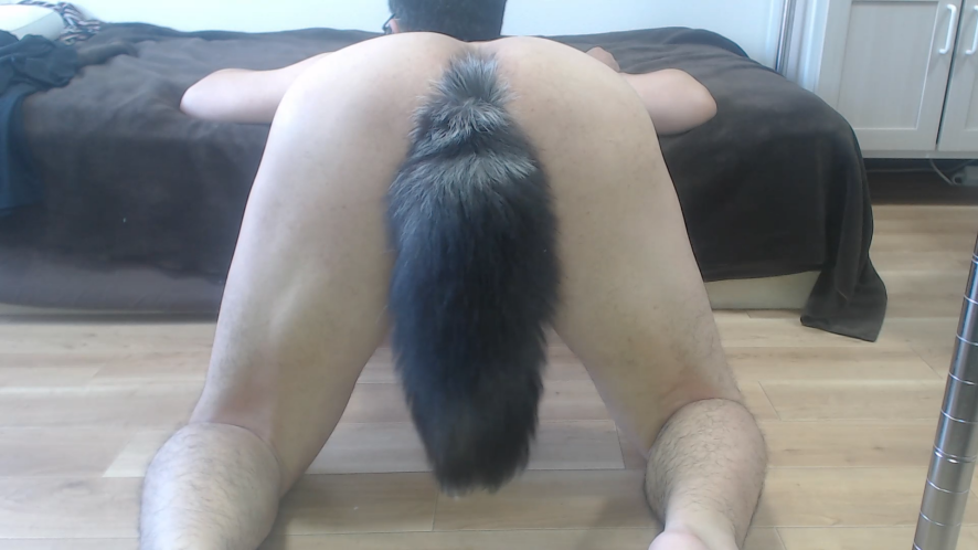 Pulling out dildo to show ass.11